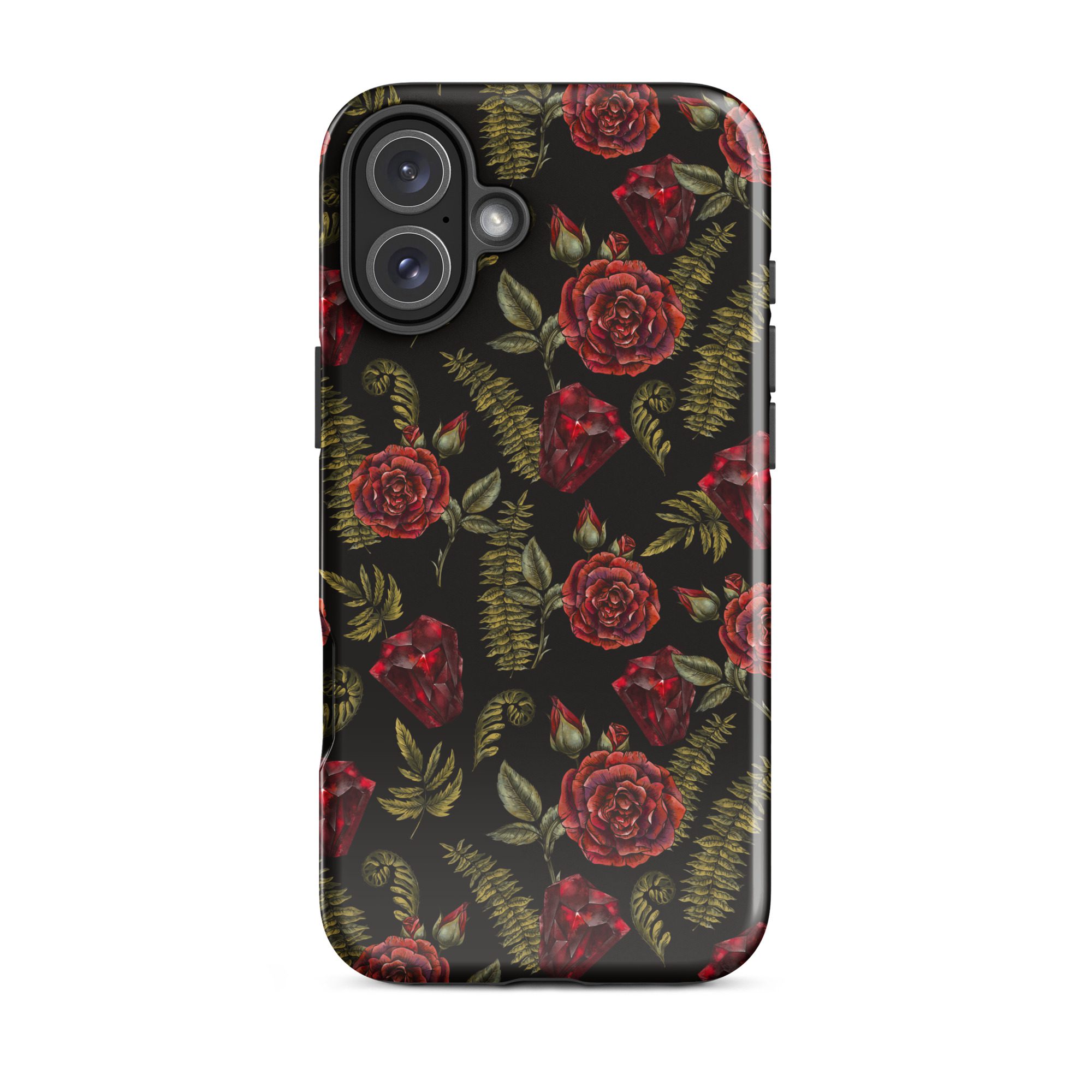 Enchanting Floral Design with Superior Protection Adorn your iPhone with the Ruby Roses Reverie iPhone Case, featuring a captivating design of deep red roses and rubies on a dark, mystical backdrop. Built with dual-layer protection, this case combines an impact-resistant polycarbonate outer shell with a shock-absorbing TPU inner lining to guard your device against drops and scratches. The Ruby Roses Reverie iPhone Case is also wireless charging compatible, offering a blend of enchanting style and practical functionality for everyday protection. • Polycarbonate outer shell • Thermoplastic Polyurethane TPU inner liner • Dual-layer protection • Precisely aligned port openings • Wireless charging compatible