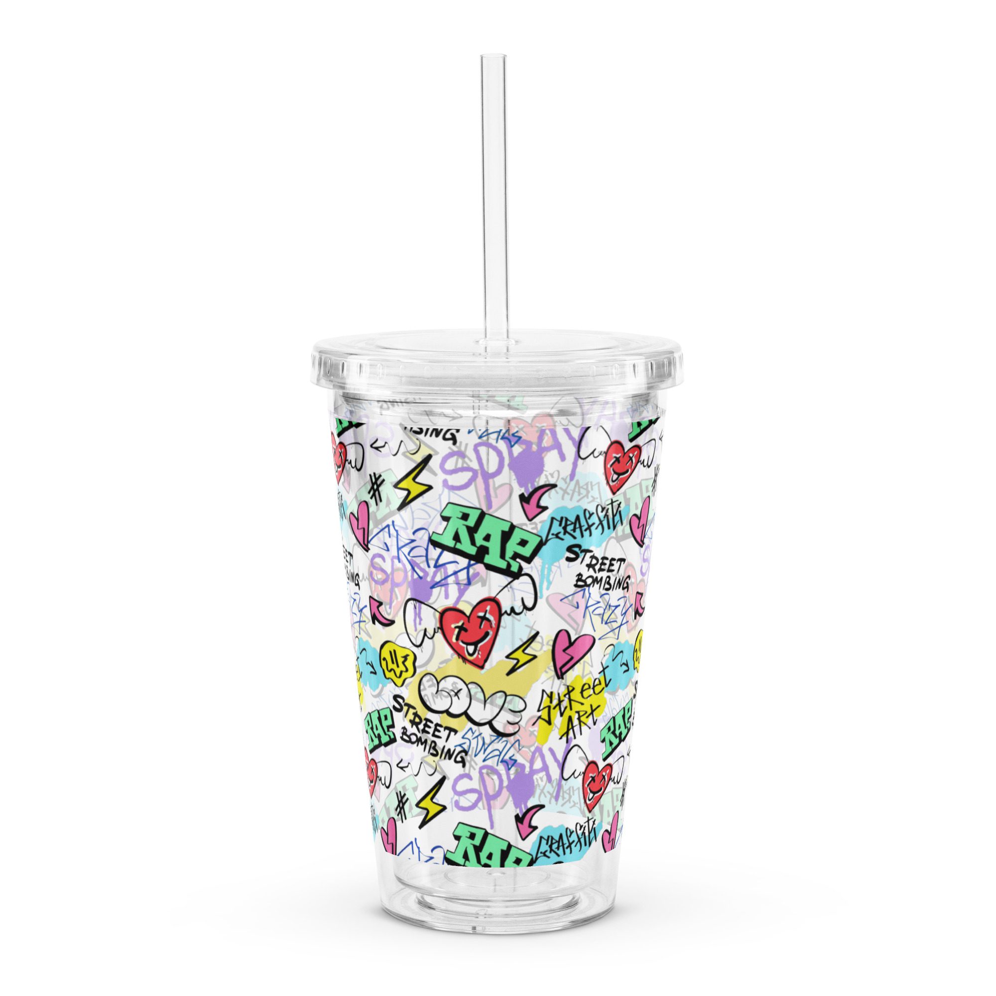 The Street Bombing Reusable Tumbler is perfect for anyone who values sustainability and bold style. With its graffiti-inspired design, this tumbler brings the energy of the streets to your daily routine, turning every sip into a statement. Made from durable, eco-friendly materials, it’s ideal for both hot and cold drinks, keeping beverages at the right temperature for hours. Compact and leak-proof, it fits easily in bags and cup holders, making it the perfect companion for work, travel, or a day out. Stand out while cutting down on waste with the Street Bombing Reusable Tumbler—a choice that’s as good for the planet as it is for your style. • Material: Clear acrylic plastic • Capacity: 16 oz. (590 ml) • Height: 6.3″ (16 cm) • Lid diameter: 3.9″ (10 cm) • Bottom diameter: 2.6″ (6.7 cm) • Double wall-insulated • Comes with a plastic straw and screw-on lid